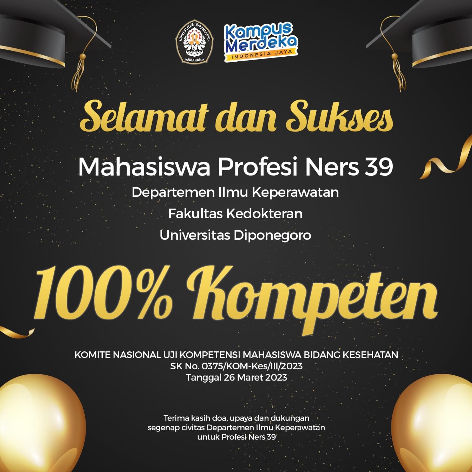 Hal ini sesuai dengan surat Keputusan Komite Nasional Uji Kompetensi Mahasiswa Bidang Kesehatan, Kementerian Pendidikan, Kebudayaan, Riset, dan Teknologi Nomor : 0375/KOM-Kes/III/2023 tanggal 26 Maret 2023 sebagaimana dirilis di website ukners.kemdikbud.go.id.