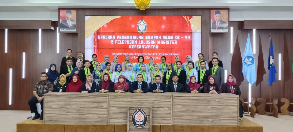 Semarang – Program Studi Pendidikan Profesi Ners dan Magister Keperawatan Fakultas Kedokteran Undip sukses menggelar upacara pengambilan sumpah ners ke- 44 dan pelepasan lulusan magister keperawatan ke-168 pada Jumat (03/02/2023) di RSG FK Undip, Kampus Tembalang.
